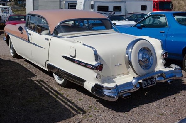 Pontiac was het automerk van General Motors dat bekend stond om zijn gunstig geprijsde “performance vehicles”. Dit is een zeer zeldzame auto in perfecte staat. De V8 Strato Streak motor van 5190 cc levert 223 pk (!) en een topsnelheid van 155 km/u. Originele bekleding en een fraai verlicht hood-ornament op de motorkap. Let ook op die schitterende zijspiegels! Echt een auto die met liefde en vakmanschap is gemaakt. Je moet met deze bijna 6 meter lange auto wel van inparkeren houden!